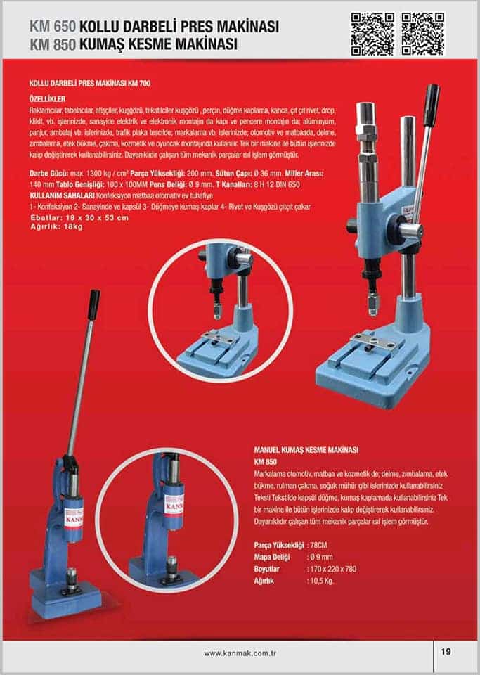 Kanmak Makina Aksesuar Çakma Makinaları imalatını yapar.